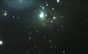 A small reflection nebula in Perseus located just to the south of the magnitude 3 star 38-Perseus. 38-Perseus is the cause of the blue flare to the upper left.