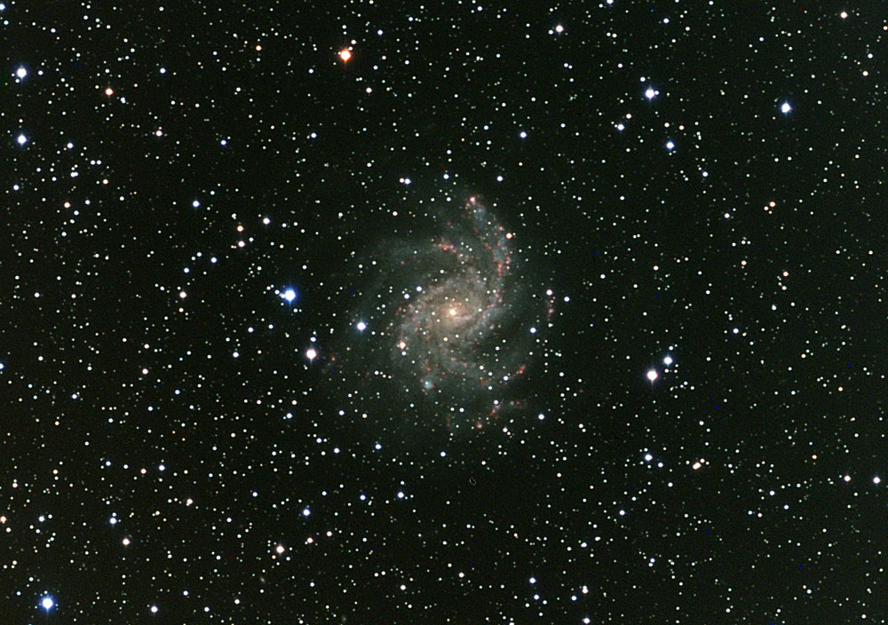 A mag. 9 type Sc galaxy at 10 million light years. NGC 6946 lies very close to the galactic plane and is obscured to some extent by galactic dust.