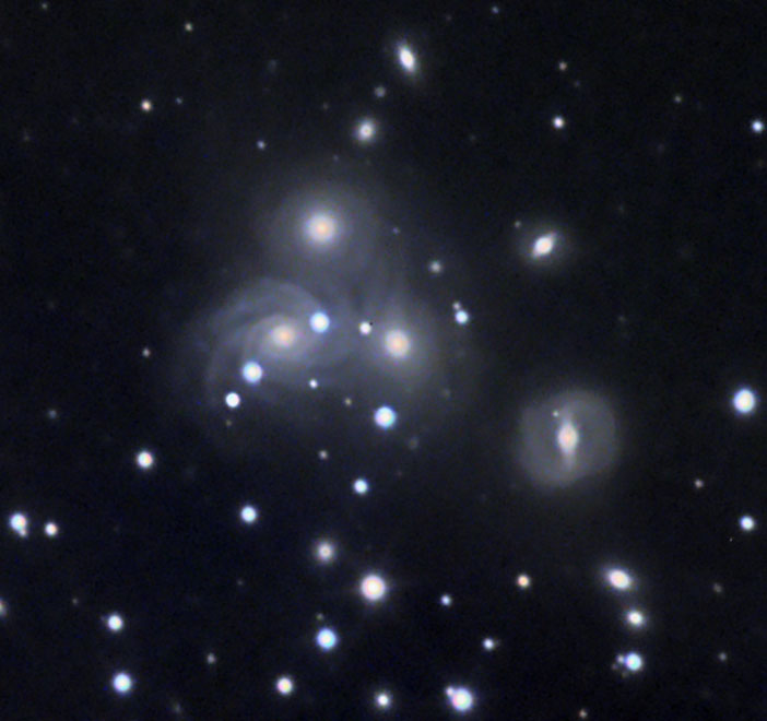 A group of interacting galaxies. Clockwise from upper center in the main group is NGC 67, NGC 69 ( detached at 2:00 position), NGC 72 (detached at 5:00 with NGC 72A immediately below), NGC 71 and NGC 70. There are numerous smaller galaxies in the image. Distance to the group is approximately 270 Mly.