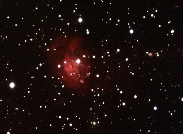 A faint emission nebula, not also the small detached nebula at lower center and right center.