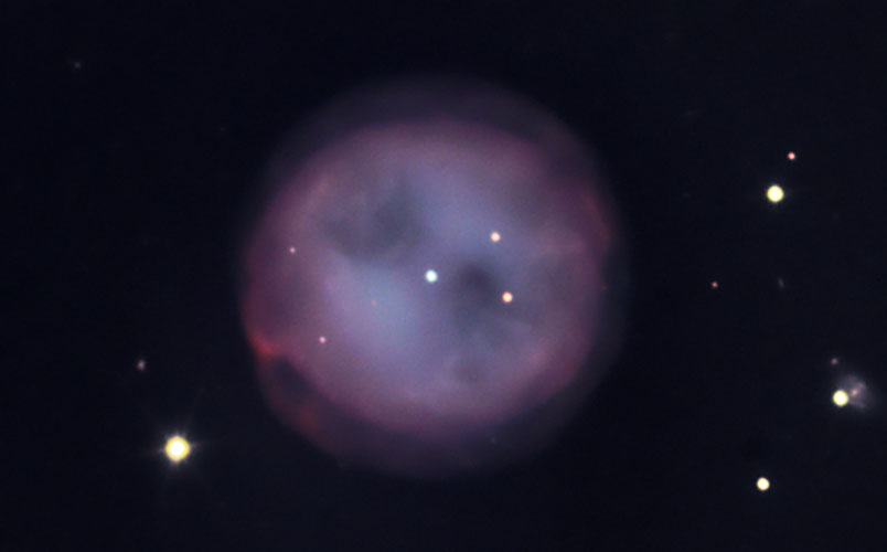 M 97 is one of the larger planetary nebula but rather featureless in small